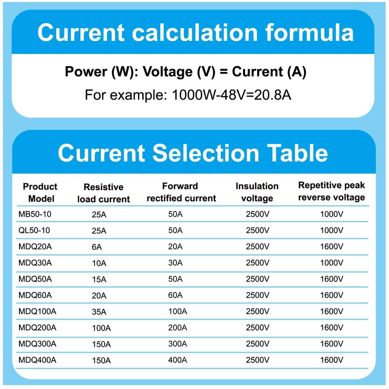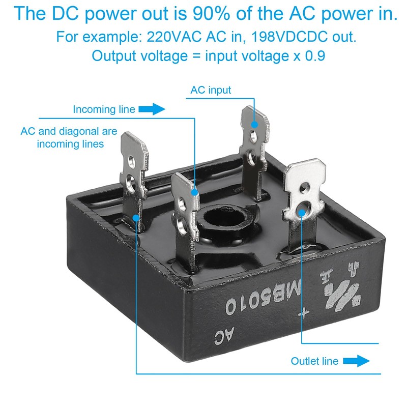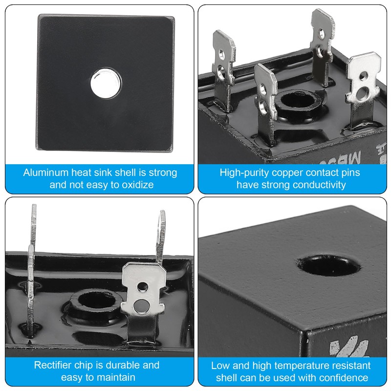 - Specification: Size: 32x32x22mm/1.28x1.28x0.88 inch; Reverse repetitive peak voltage: 1000V; Forward rectified current: 50A; Insulation voltage: 2500V; Resistive load current: 25A; Packing List: 2 Pcs Rectifier Diode