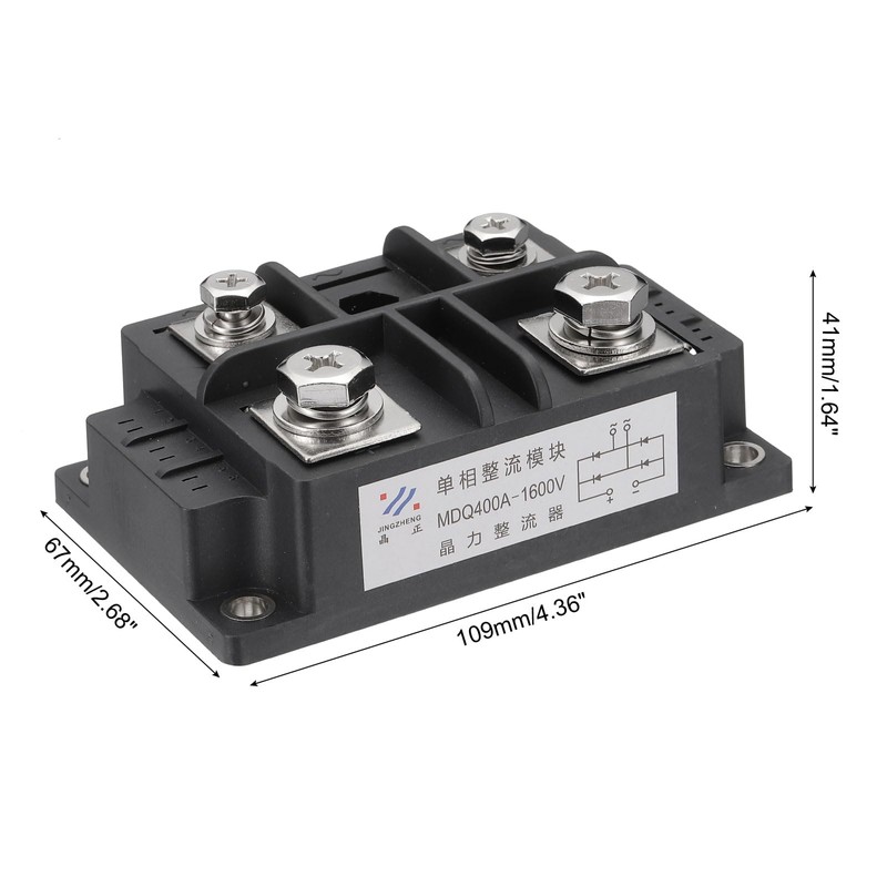 - Specification: Size: 109x67x41mm/4.36x2.68x1.64 inch; Reverse repetitive peak voltage: 1600V; Forward rectified current: 400A; Insulation voltage: 2500V; Resistive load current: 150A; Packing List: 1 Pcs Rectifier Diode
