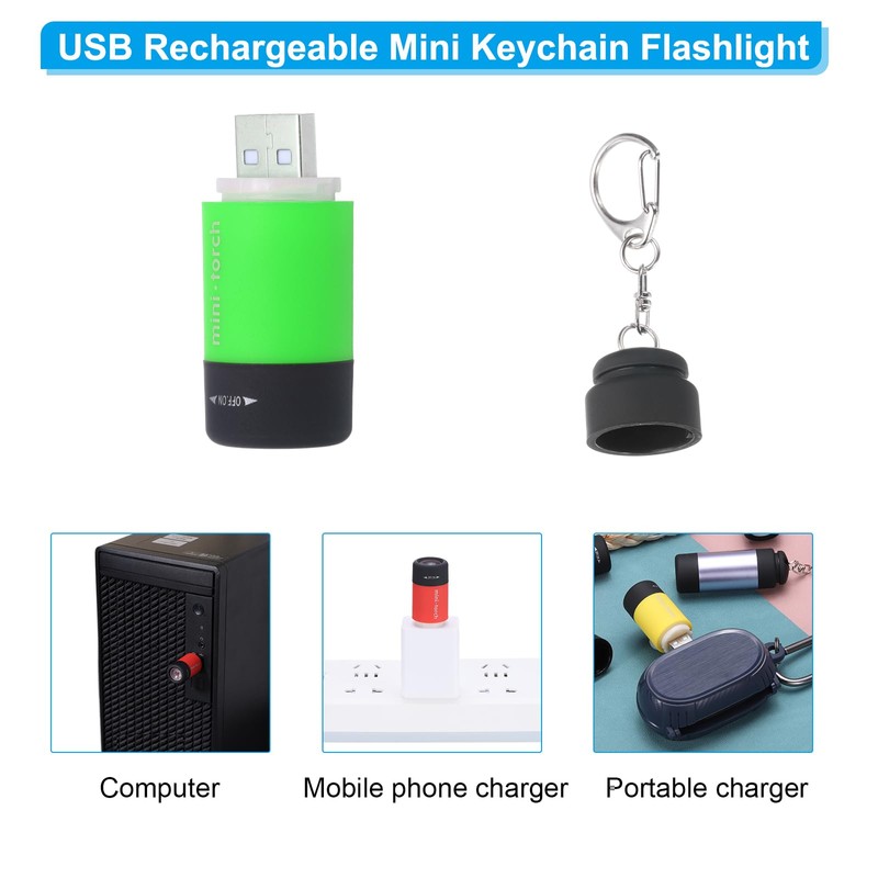 - Specification: Material: Plastic; Color: Green; Size: 54 x 22mm / 2.13 x 0.87inch (L*Dia); Charging Mode: USB rechargeable; Light Source: LED white light; Package List: 1 x Mini keychain flashlight