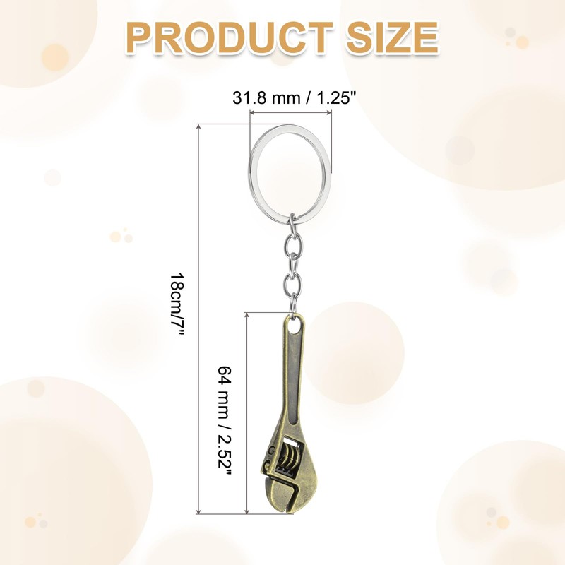 - Color: Bronze; Material: Metal; Wrench Length: 64 mm / 2.52 inch; Keyring Diameter: 31.8 mm / 1.25 inch; Package Contents: 2 x Key Chain Rings