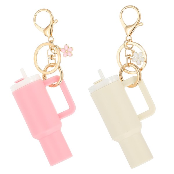 - Color: Pink, White; Material: Plastic, Metal; Shape: Mini Cup and Flower; Mini Cup Size: 10 x 5cm / 3.94 x 1.97 Inch (L x W); Keychain Size: 7.5cm / 2.95 Inch (L); Packing List: 2Pcs Mini Cup Keychain