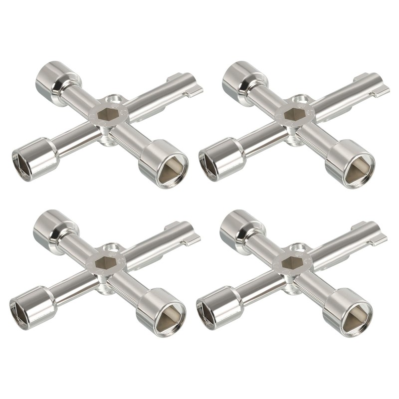 PATIKIL Multifunctional Universal Cross Wrench 4 Pack Alloy 4 Way Gas Water Meter Wrench Wrench for Electric Cabinet Valve Silver
