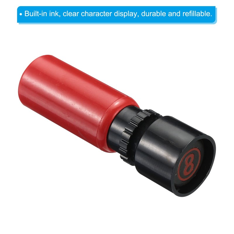 - Ink colour: red; pattern: digital 8; material: plastic; character size: 7 mm / 0.27 inches; total l size: 18 x 56 mm / 0.7 x 2.2 inches (D*L); package list: 1 x number learning stamp
