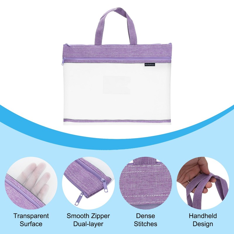 PATIKIL Nylon Document Bag with Handle Mesh Transparent Handbag Paper File Tote Pouch for Office, Purple