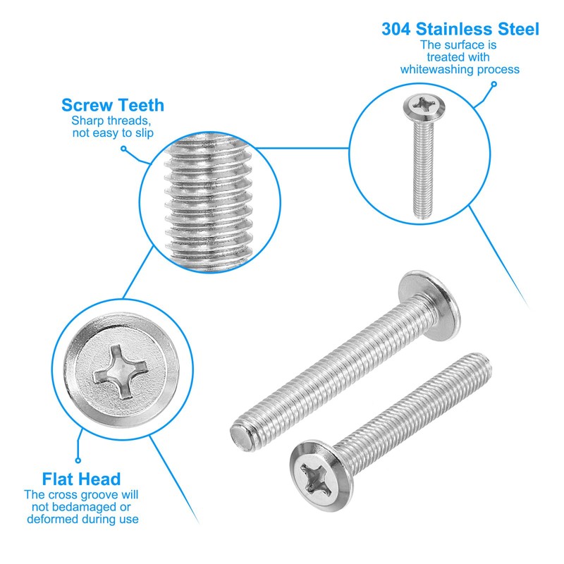 - Material: 304 Stainless Steel; Thread Size: M6*1.0; Package List: 16 x Round Head Phillips Screws