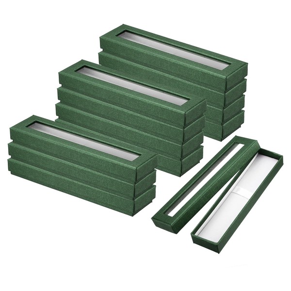 PATIKIL Pen Gift Box, 12 Pack Empty Pen Case Cardboard Case with Clear Window Pen Presentation Display Box for Pencil Ballpoint Jewelry Business Office, Green