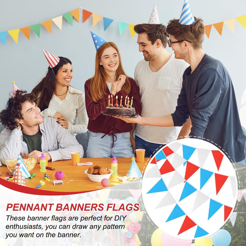 - Application: Pennant banner flags are suitable for various occasions such as parties, holidays, kids' birthdays, grand openings, carnivals, sports events and celebrations to elevate the festive atmosphere