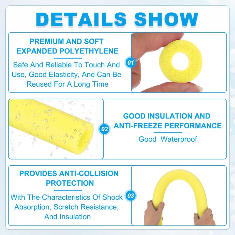 This foam tube is suitable for use as a good thermal insulation, cushioning, and shockproof material to protect pipes and handles of fitness equipment. It is widely used to reinforce and protect various pipes, such as furniture, heating, hot water, swimming pools, and beaches, as well as shatterproof packaging for DIY handicrafts.