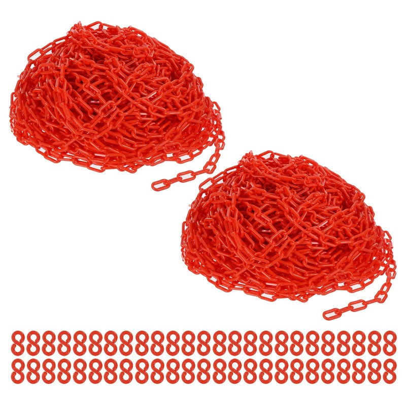 - Size: The total length of the plastic chain links is 400 Ft, and each individual link measures 1.38 x 0.79 x 0.24inches/3.5 x 2 x 0.6cm(L*W*H), Color Red.with 50 Red Plastic Hooks.