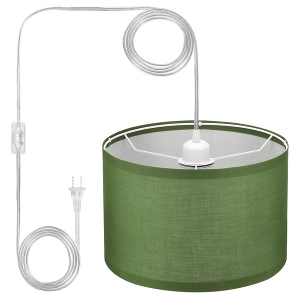 PATIKIL Plug in Pendant Light, 15Ft Rope Cord Hanging Lamp Fixture Army Green