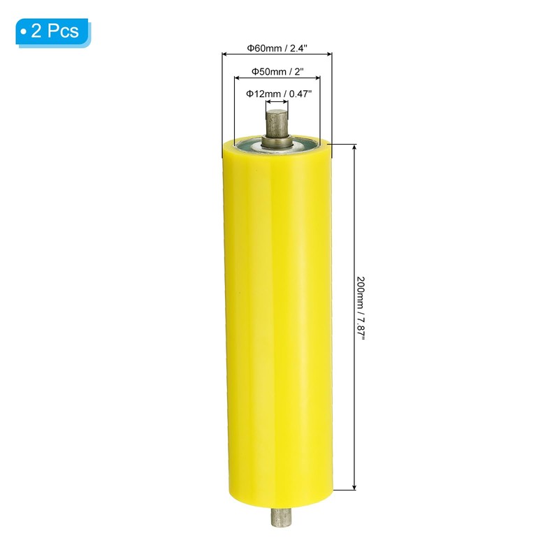 - Size: Color: Yellow; Shaft Diameter: 12mm / 0.47 inch; Roller Diameter: 50mm / 2 inch; Diameter of rubber-containing rollers: 60mm / 2.4 inch; Roller Length: 200mm / 7.87 inch; Total Length: 240mm / 9.45 inch