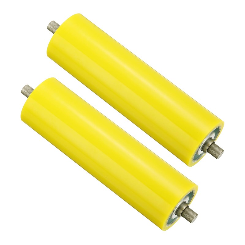 PATIKIL Polyurethane Coated Conveyor Roller 4" Diameter 8" Length, 2 Pack Stainless Steel Gravity Transmission Replacement Part Galvanized End, Yellow