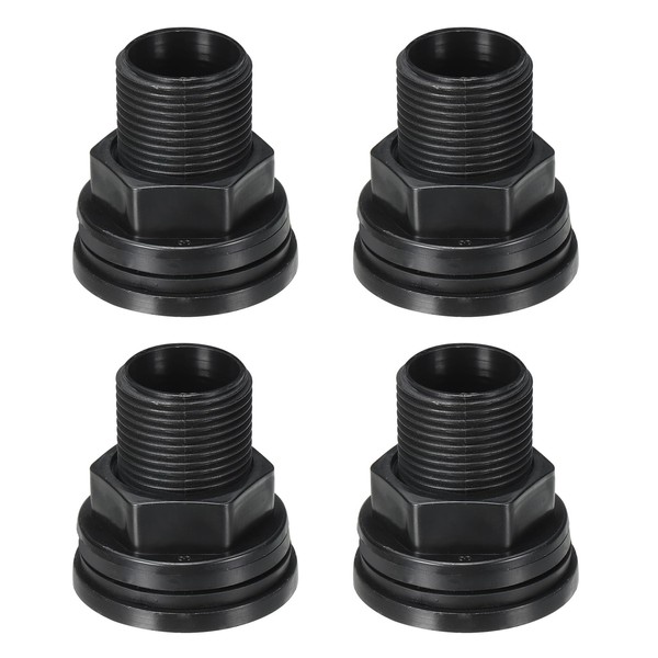 PATIKIL PVC Bulkhead Fitting 1/2 Female x 3/4" Male, 4 Pack Double Threaded Bulkhead Water Tank Connector with Seal Gasket for Rain Bucket, Sinks, Aquariums, Black