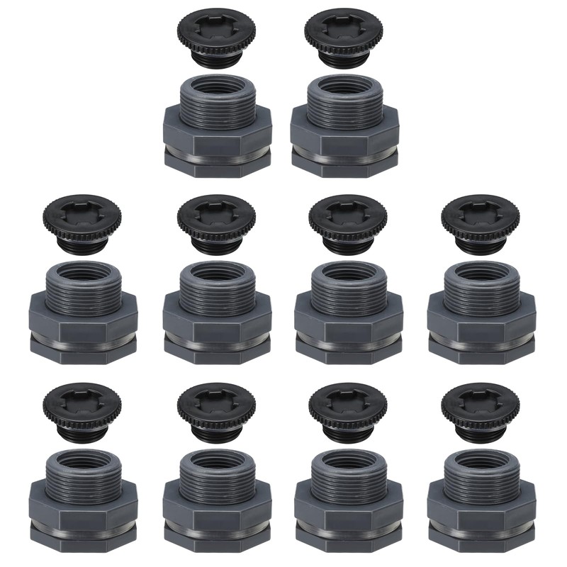 PATIKIL PVC Bulkhead Fitting with Plug 1", 10 Pack Bulkhead Water Tank Connector with Silicone Seal Gasket Garden Hose Fitting with Plug for Rain Bucket, Sinks, Aquariums, Black
