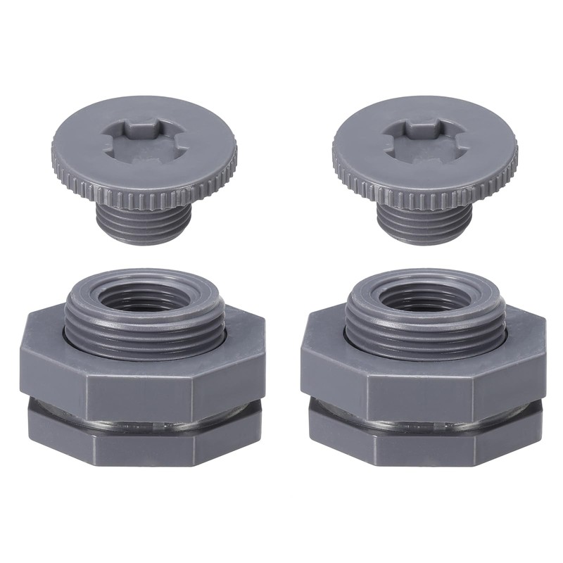 PATIKIL PVC Bulkhead Fitting with Plug NPT1/2", 2 Pack Bulkhead Water Tank Connector with Silicone Seal Gasket Garden Hose Fitting with Plug for Rain Bucket, Sinks, Aquariums, Gray