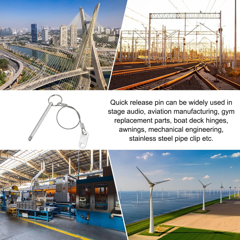 - Application: Ball locking pins can be widely used in stage audio, aviation manufacturing, gym replacement parts, boat deck hinges, awnings, mechanical engineering, stainless steel pipe clip etc