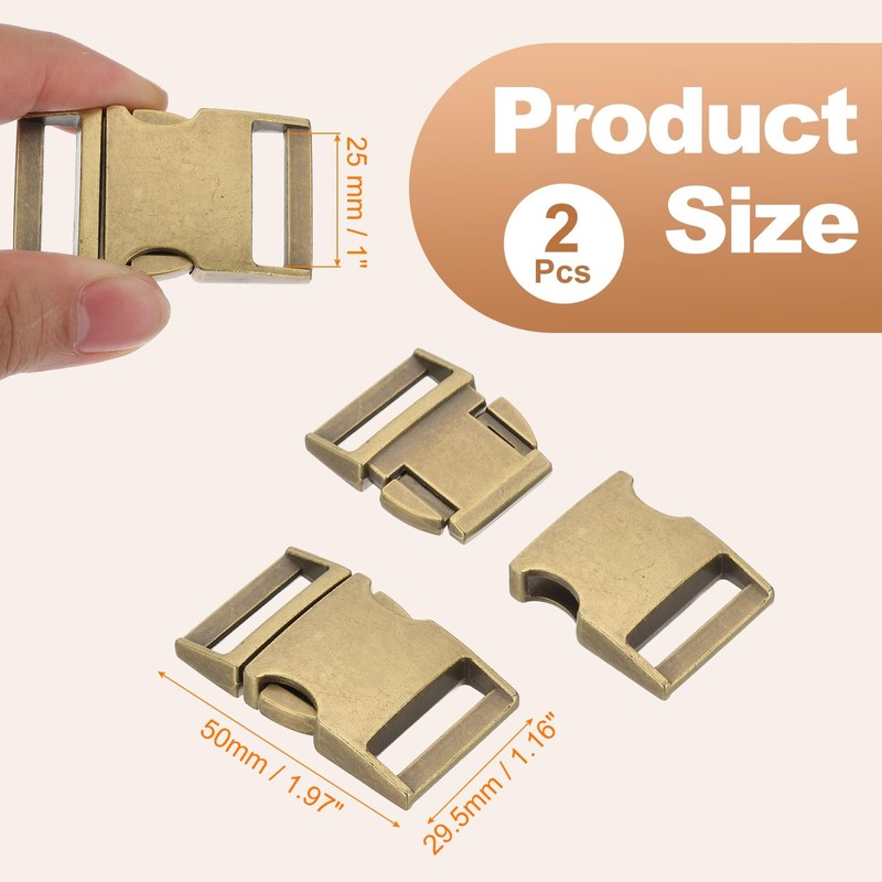 - Color: Bronze; Material: Zinc Alloy; Inner Diameter: 25 mm / 1 inch; Height: 10 mm / 0.39 inch; Dimension: 50 x 29.5 mm / 1.97 x 1.16 inches (L*W); Package List: 2 Pcs x Quick Side Release Buckle