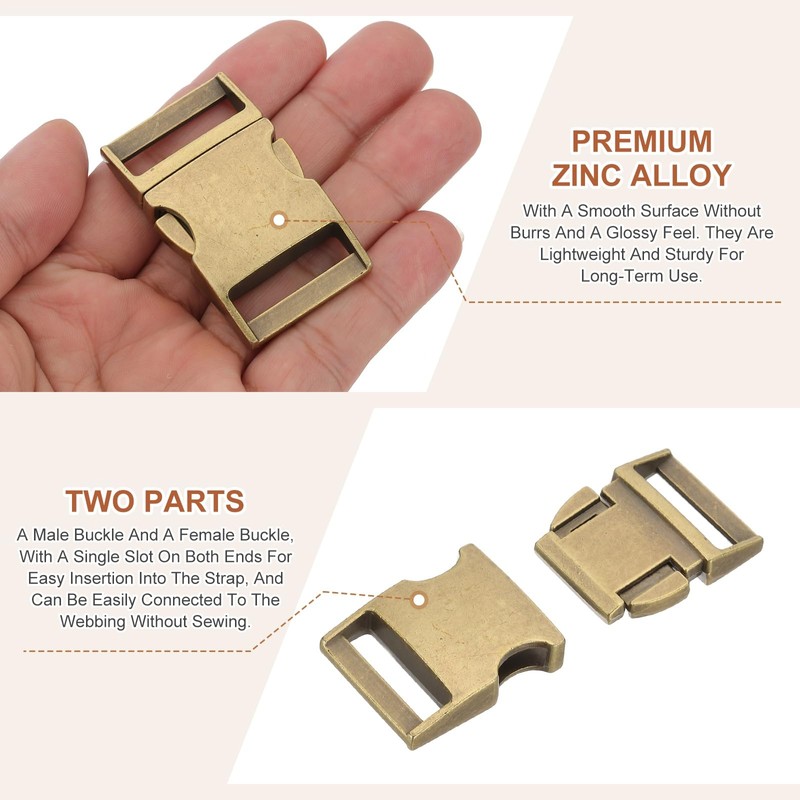 - Advantage: These metal buckles are made of premium zinc alloy, with a smooth surface without burrs and a glossy feel. They are lightweight and sturdy for long-term use.