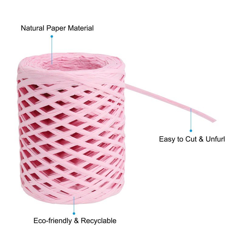 PATIKIL Raffia Ribbon 100 Yard, 1 Roll Natural Packing Paper Twine String for Crochet Box Wrapping Craft Holiday Decor, Pink