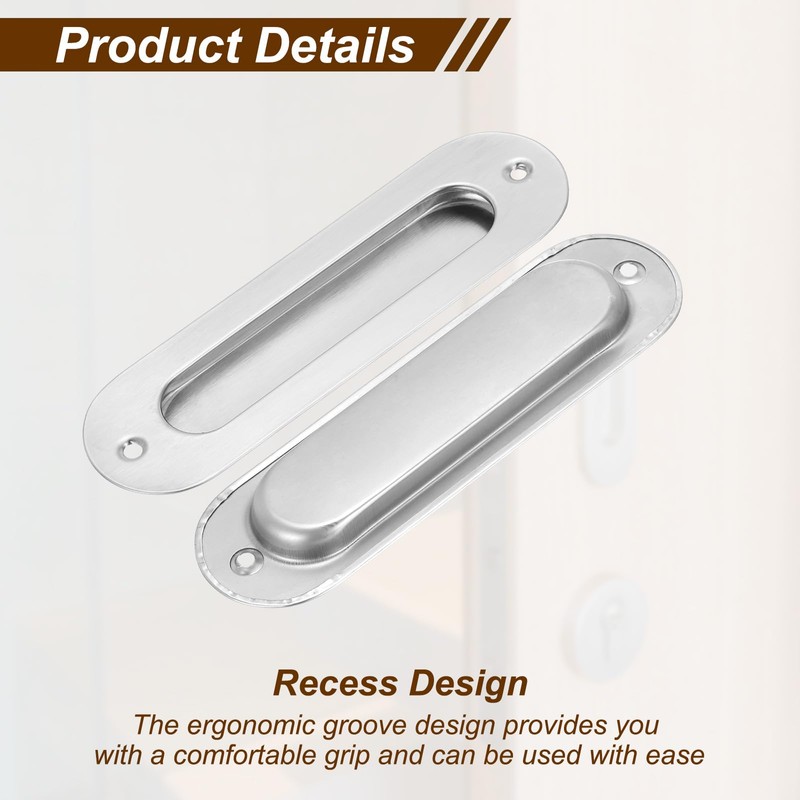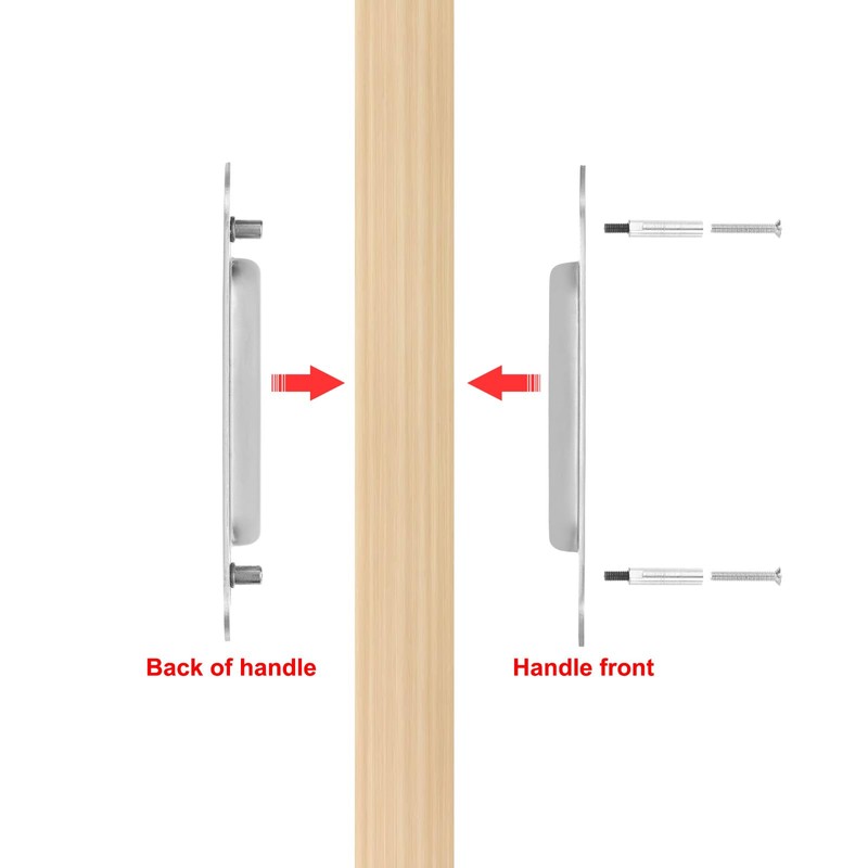 - Material: 304 Stainless Steel, Size: 142 x 41 x 10 mm / 5.59 x 1.61 x 0.39 inch ( L*W*H), Packing List: 2 Pack x Pocket Door Handle, 8 Pack x Screw