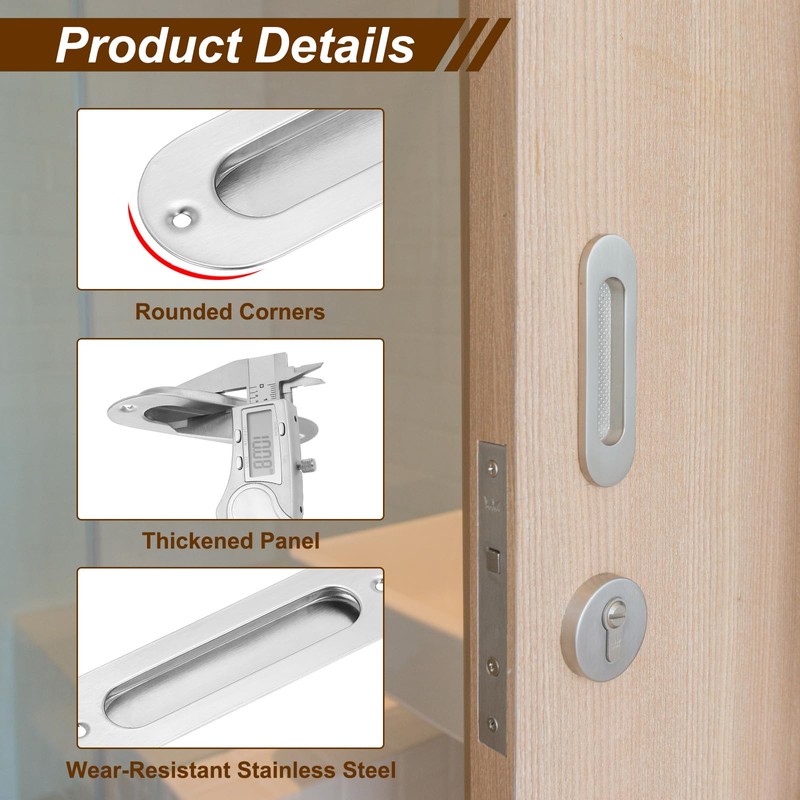 - Advantage - The pocket door hardware is made of 304 stainless steel plating, wear-resistant and corrosion-resistant, with long-lasting luster.