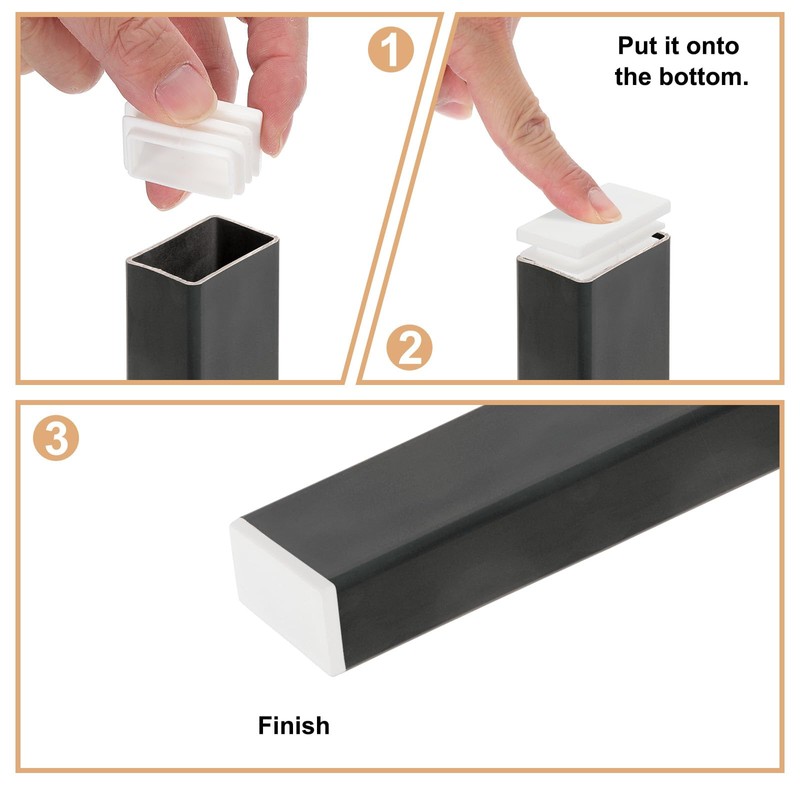 - Application: Our rectangle plastic plugs are suitable for chair legs, table legs, bar legs, bookshelves and other furniture to protect the floor and reduce noise. Plastic pipe end caps are also suitable for outdoor use, railings, pole tube caps, metal bicycle accessories, wrought iron steel finishing plugs, etc.