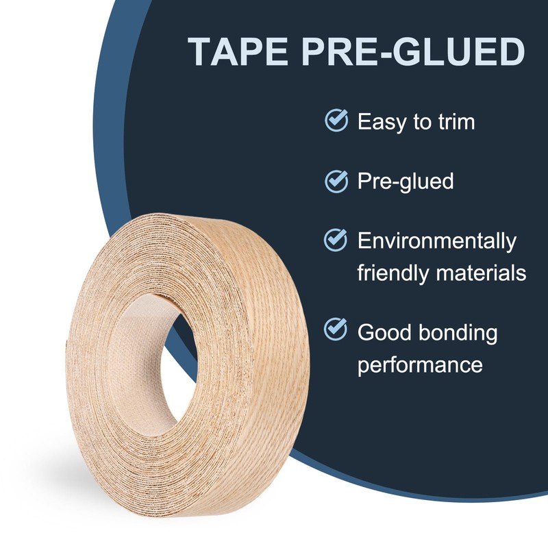 NOTE: Pre-glued plywood veneer has strong hot melt adhesive distributed evenly on the back, helping you to quickly and firmly attach the wood veneer tape to the edge of furniture.