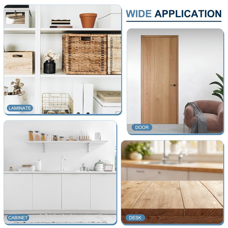 - Application: Our edge banding can be mounted on wood, plywood, particleboard, cardboard, or metal surfaces. Perfect for furniture, solid wood doors, cabinets, shelves, tables, desks, and DIY wooden crafts