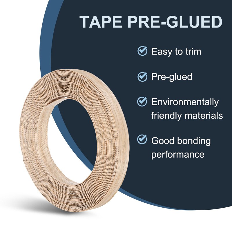 NOTE: Pre-glued plywood veneer has strong hot melt adhesive distributed evenly on the back, helping you to quickly and firmly attach the wood veneer tape to the edge of furniture.