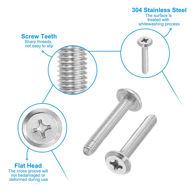 • Material: 304 Stainless Steel; Thread Size: M3*0.5; Packing List: 80 x Round Head Phillips Screws