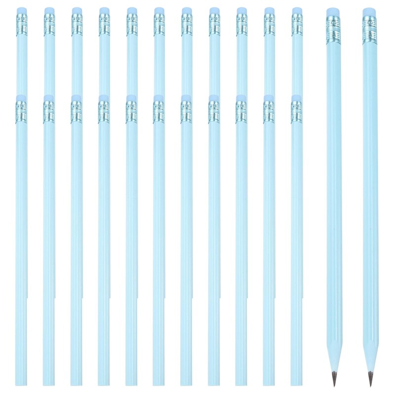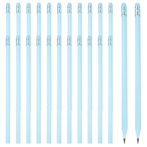 PATIKIL Round Pencils 24 Triangular HB Graphite Pencils Wooden Pencils with Eraser for Classroom Office Composition Drawing Supplies Blue