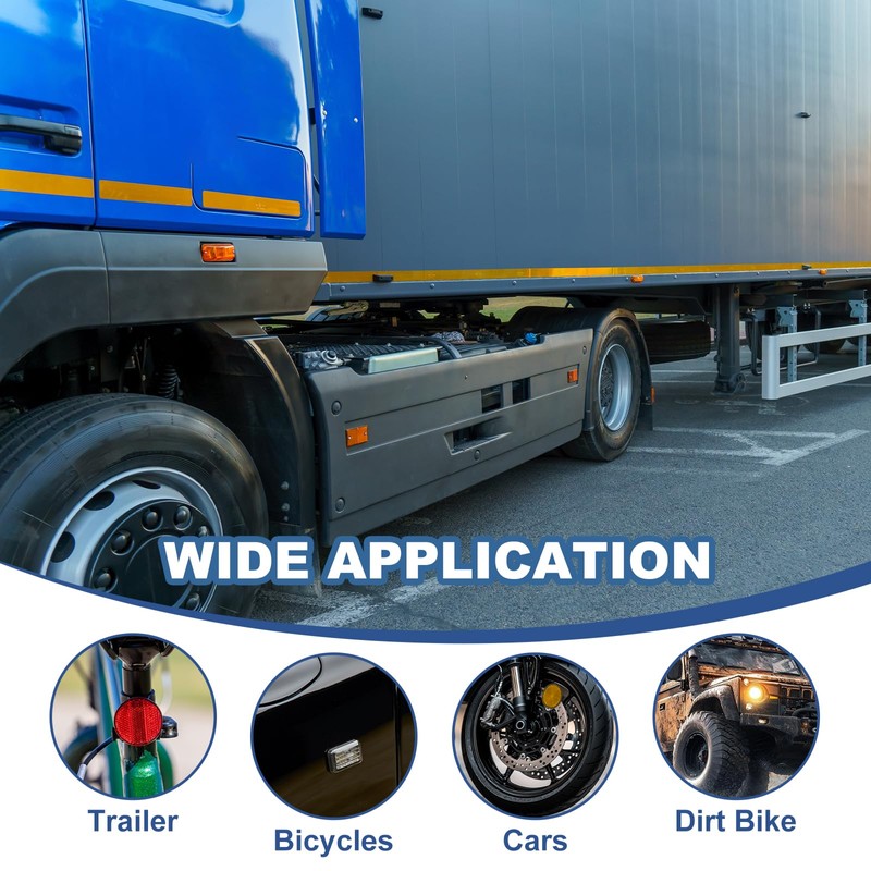 - Application: These reflectors are suitable for use on motorcycles, motorized scooters, gate posts, cars, trailers, and standard bicycles, among other applications