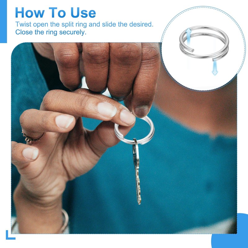 - Durable and Secure: These split rings are made of Stainless Steel, which can resist rust, deformation, and breakage while providing a smooth, scratch-free surface for comfortable handling. Easy and Efficient Use: The double-layer design requires no pliers, simply twist to open/close, with strong tension for quick item changes while maintaining a firm, stable hold. Versatile Strength: Flexible yet rigid, the loops snap back to shape effortlessly, ensuring reliable connections for usage.
