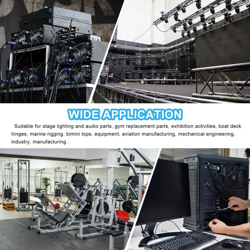 - Anwendung: Geeignet für Bühnenbeleuchtung und Audioteile, Fitnessgeräte-Ersatzteile, Ausstellungstätigkeiten, Bootdeck-Scharniere, Marine-Rigg, Bimini-Top, Ausrüstung, Luftfahrtfertigung, Maschinenbau, Industrie, Fertigung