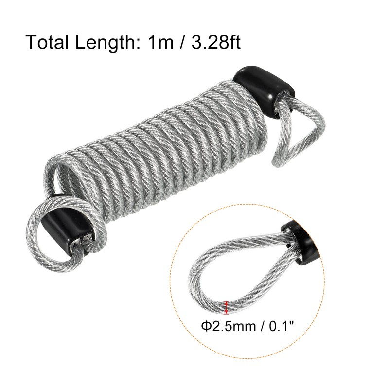 PATIKIL Security Steel Cable 2.5mm x 1m/3.28ft Coated Spring Luggage Lock Wire Rope with Double Loop Transparent