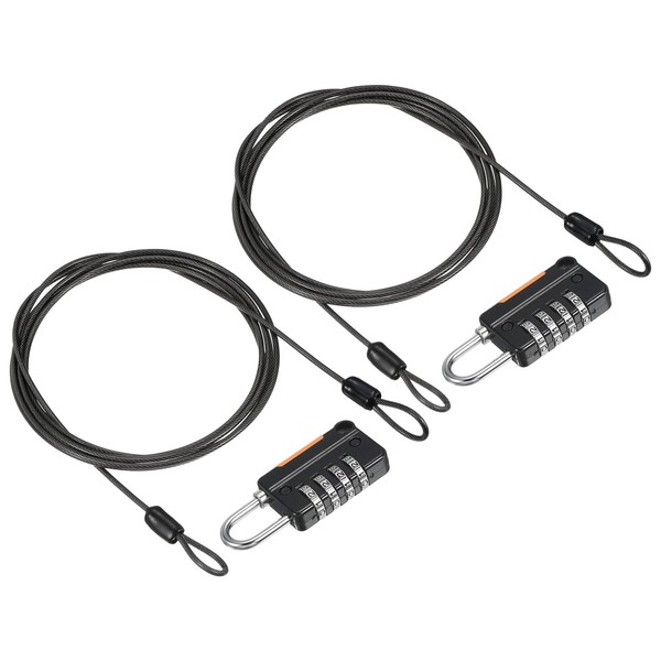 PATIKIL Security Steel Cable with 4 Digit Combination Lock, 2 Set 6.6Ft Coated Safety Wire Rope Double Loop Padlock for Outdoor Travel Luggage, Black