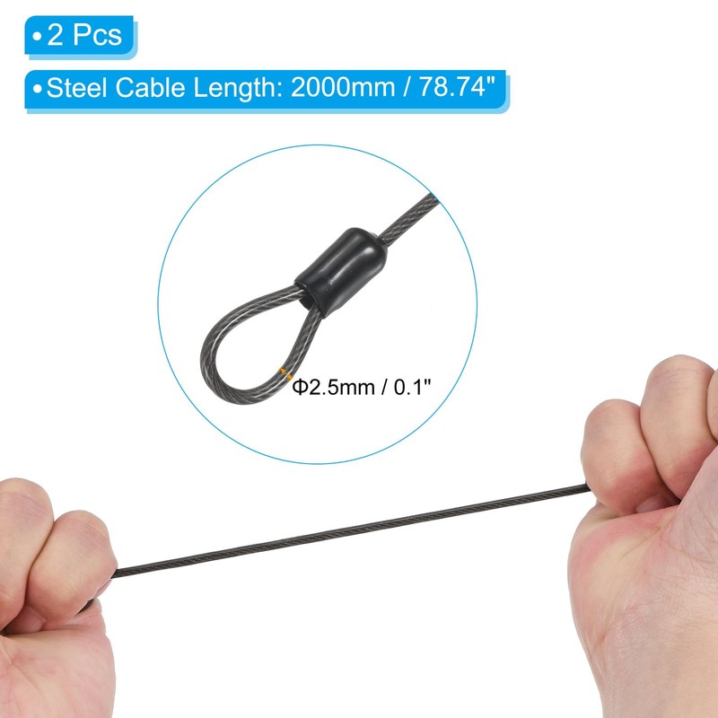 Steel Cable Size: 2000 x 2.5mm/ 78.74 x 0.1 inch (L*Dia.)