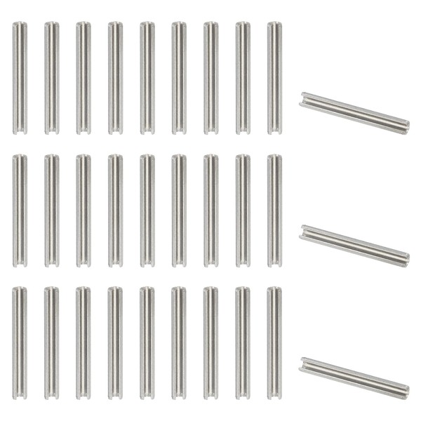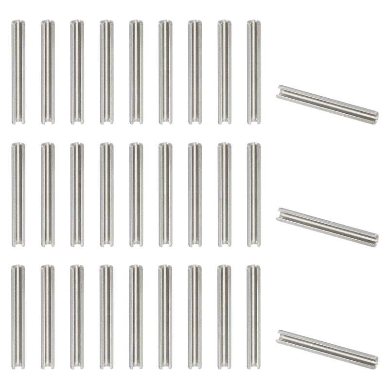 - Color: Silver; Material: 304 Stainless Steel(18-8); Overall Size: 3.2 x 25mm / 1/8" x 1" (Dia x L); Thickness: 0.6 mm / 0.02 inch; Package List: 50 Pcs x Slotted Spring Pin