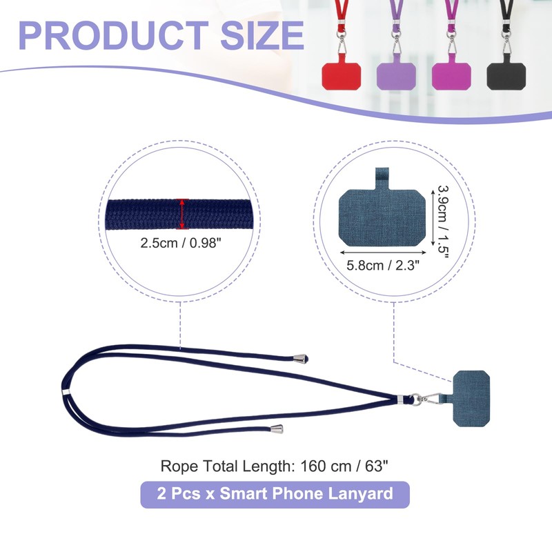 - Specification: Color: Dark Blue; Material: Polyester; Total Length: 160 cm / 63 inch; Packing List: 2 Pcs x Smart Phone Lanyard