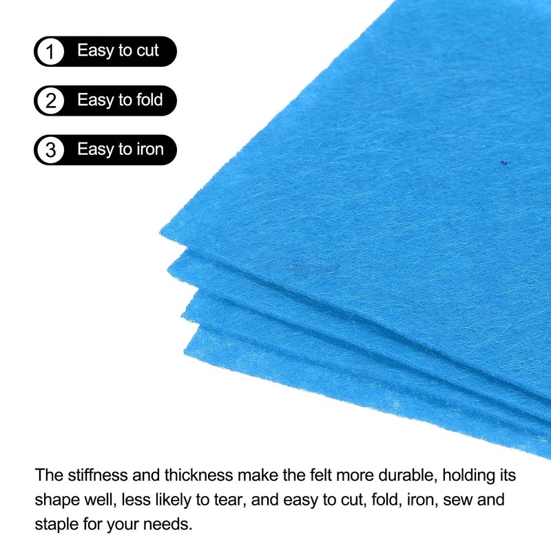 The stiffness and thickness make the felt more durable, holding its shape well, less likely to tear, and easy to cut, fold, iron, sew and staple for your needs.