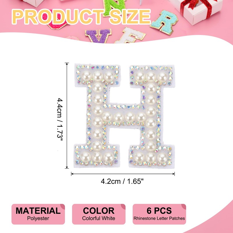 PATIKIL Strass-Buchstaben-Aufnäher, 6 Stück, Anfangsbuchstabe H, selbstklebender Aufnäher, bestickter Stoff, 4,4 cm, Alphabet-Aufkleber für Kleidung, Hüte, Make-up-Taschen, DIY, buntes Weiß