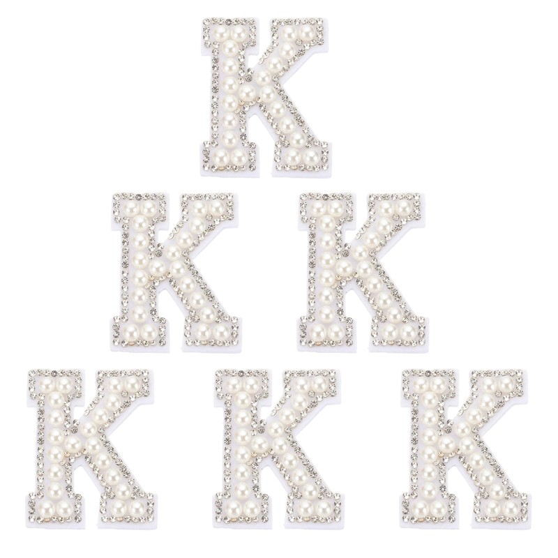 PATIKIL Strass-Buchstaben-Aufnäher, 6 Stück, Anfangsbuchstabe K, selbstklebender Aufnäher, bestickter Stoff, 4,4 cm, Alphabet-Aufkleber für Kleidung, Hüte, Make-up-Taschen, DIY, Weiß