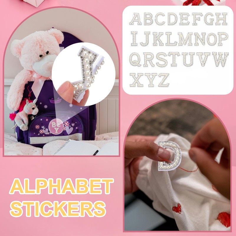 Lieferumfang: 6 x Strass-Buchstaben-Aufnäher.