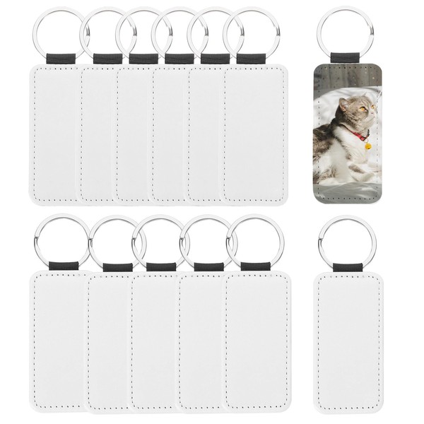 PATIKIL Sublimation Blank Keychains, 12 Pcs Rectangle Keychain Blanks Bulk Double Side PU Leather Heat Transfer Key Chains for DIY Craft, White