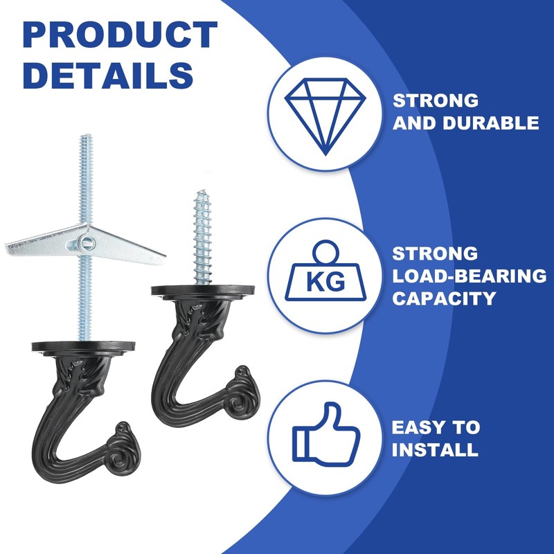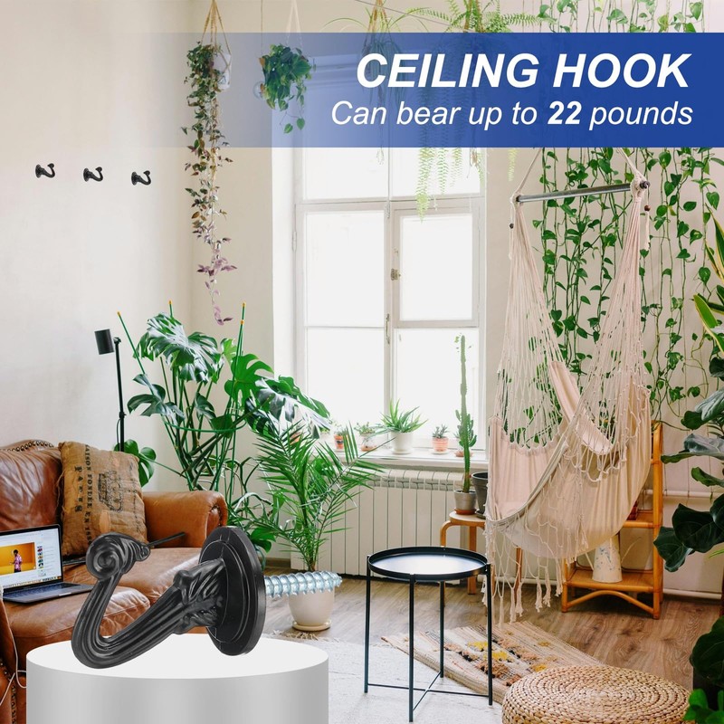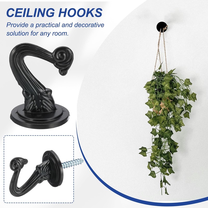 • Advantage: Heavy duty ceiling hooks are made of zinc alloy, which is strong and durable, and can bear up to 22 pounds. The ceiling hook features a beautifully carved pattern that will perfectly match your home decor and make your hanging display more distinctive.