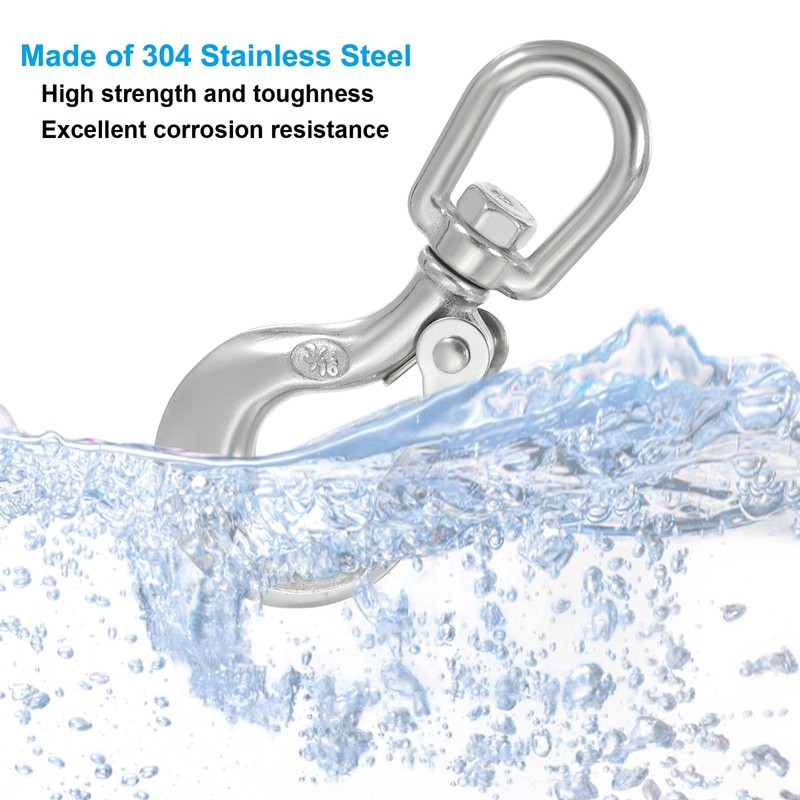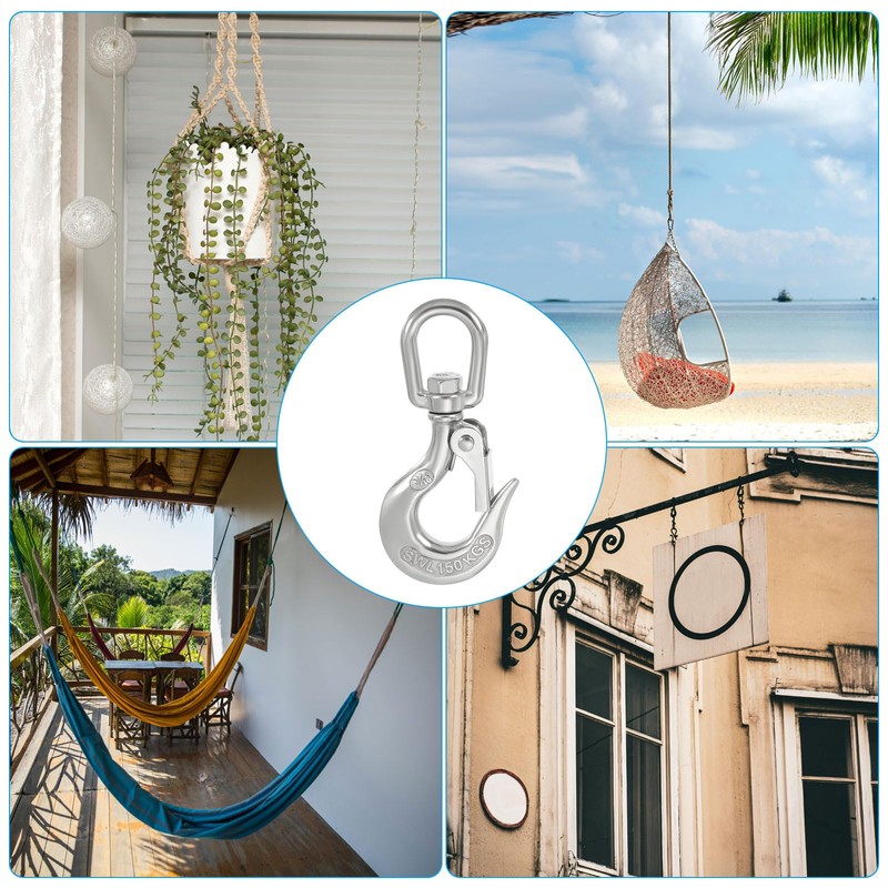 - Advantage: Made of 304 stainless steel, strong load-bearing capacity, strong and durable, rust-proof and not easy to deform. Heavy crane hoist hook allows you to change the lift angle and rotation at will. 360 free rotation to prevent ropes or chains from tangling.