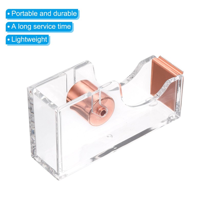 PATIKIL Tape Dispenser, Tape Dispenser Desk Cute Tape Desk Dispenser Holder Weighted Transparent Acrylic Weighted Heavy for Tape Office Desktop, Rose Gold