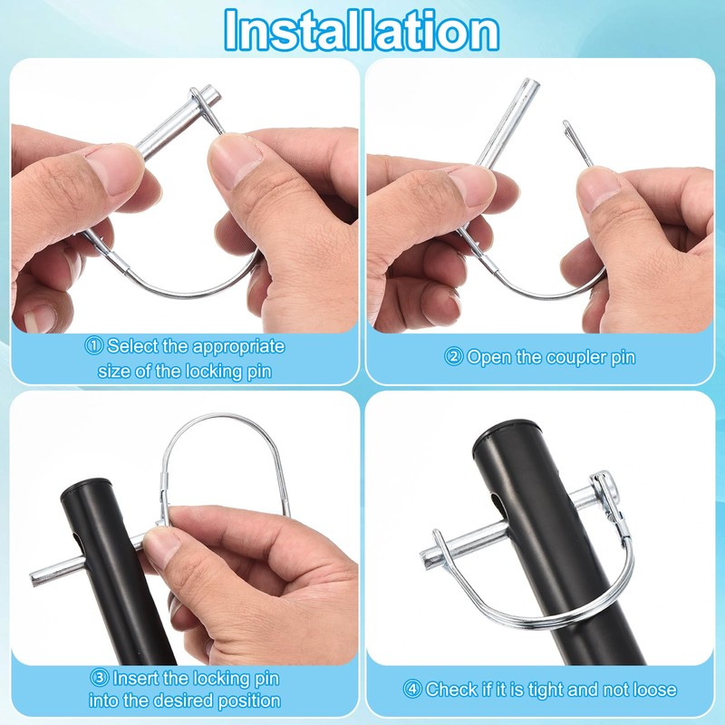 Trailer hitch pins are made from carbon steel so it has a strong load-carrying capacity and long service time. It is strong and difficult to loosen when in use. You can use the trailer coupler pin in any weather conditions.