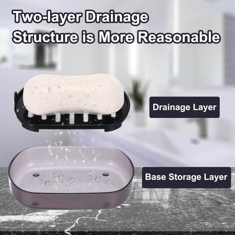 2. Built with a two-layer design, including leak-proof and drainage layers, the Removable drain pan ensures the upper layer drains and the lower layer collects water, preventing the soap from soaking in excess water, and ensuring your soap dries and is ready to use.
