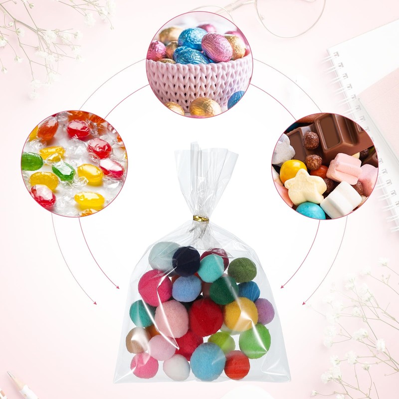 - Application: These clear treat bags are good for packaging homemade goody like cake pops, cookies, candies (lollipops, beans), baked goods (muffins, macarons), snacks (popcorn, nuts, peanut brittle), dried fruits, berries, and party favors or small gifts.